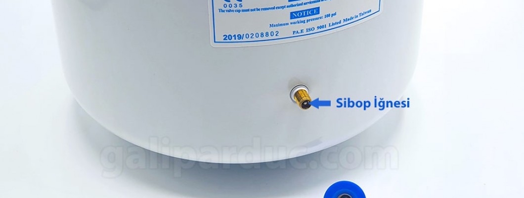 Bu resimde sibop iğnesini görüyoruz öncelikle bu iğneye sivri bir cisim ile içine bastıralım ve buradan su çıkıyor mu kontrol edelim şayet iğneyi içeri bastırdığımızda su çıkıyor ise bu tankın tamiri mümkün değildir bu tank yenisiyle değişmelidir. Su çıkmıyor az bir hava yada hiç hava çıkmıyor ise tanka hava basarak tankımızı normal haline getirebiliriz.